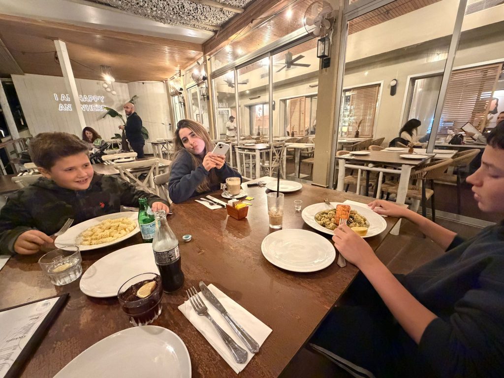 הם אכלו פסטות ופיצות, והאווירה הייתה שמחה ונעימה.