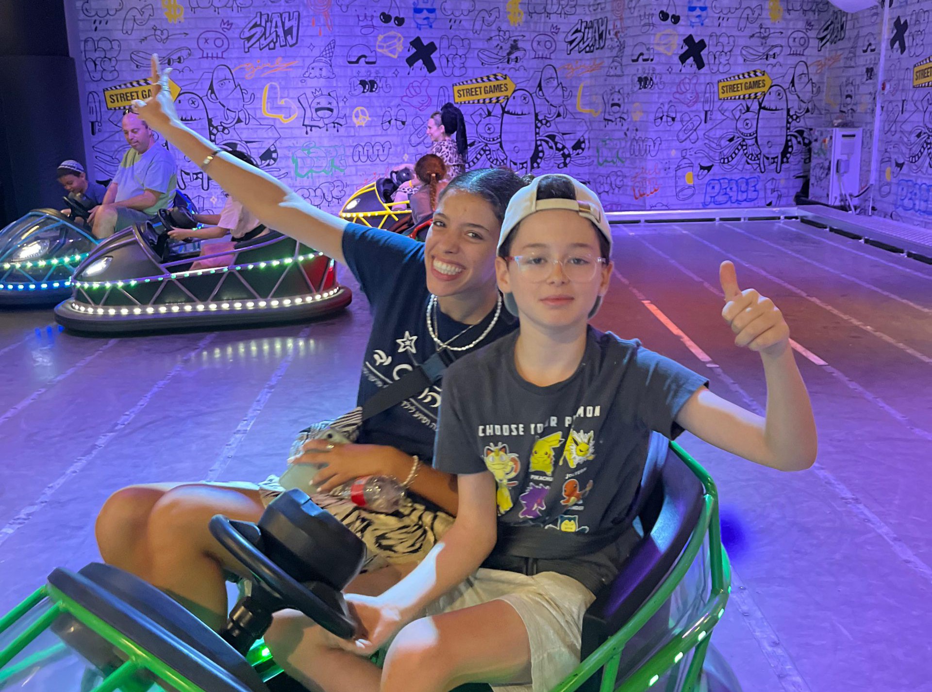 הם התחילו בארוחה איטלקית בקפה גרג שכללה פסטה שמנת פטריות, פיצה לוהטת, אצבעות גבינה פריכות וסלט מרענן. אחר כך עברו למתחם סטריט גיימס, שם חיכו להם משחקי מחשב, מכוניות מתנגשות והמון צחוקים.