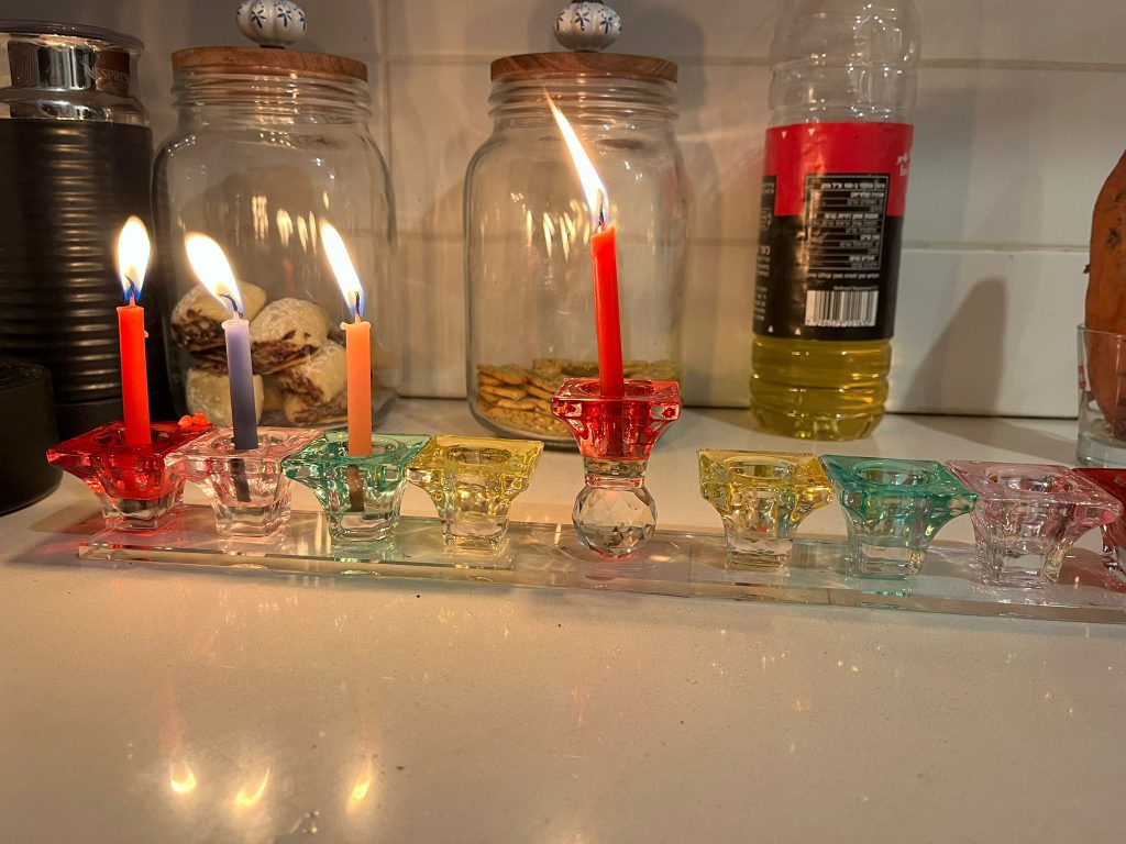 בנר השלישי של חנוכה הגיעו בנות השירות יחד עם הרכזת לניר יצחק, לחגוג את החג בבית של אושרית גולדין יחד עם משפחת שחר.