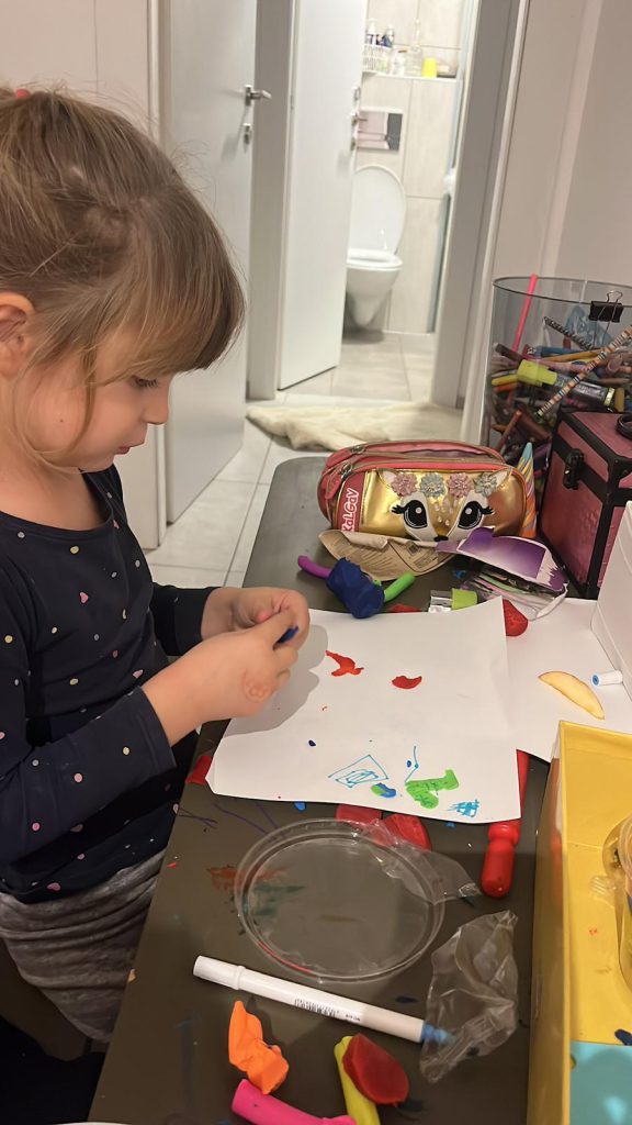 אחר כך המשיכו למשחקים נוספים, ולסיום יצרו יחד צורות מבצק על הדף.